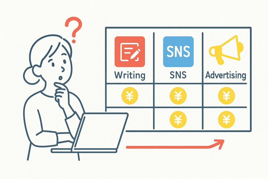 第一に 職種の一点集中 です。候補は「ライティング」「SNS運用」「広告サポート」の3つ。
