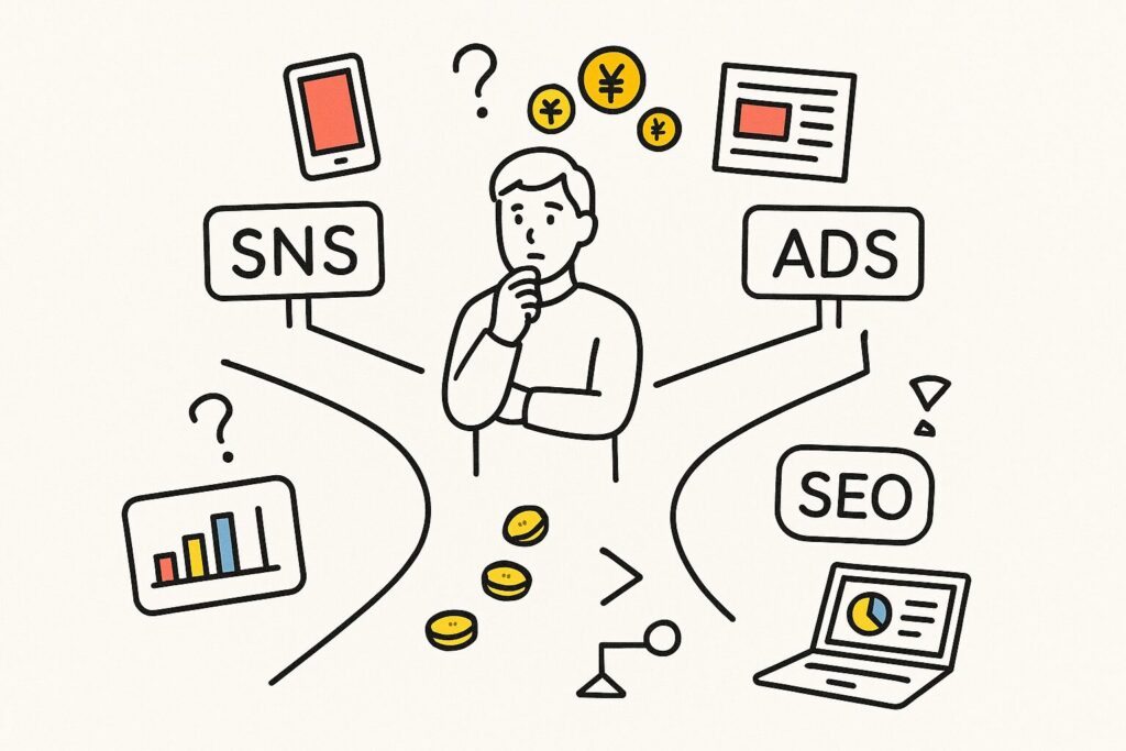 - A2. 摩擦が最小の領域です。SNSは短サイクル検証、広告は数字で改善、SEOは着手の速さが強み。自分の資質に合う1つを90日固定してください。