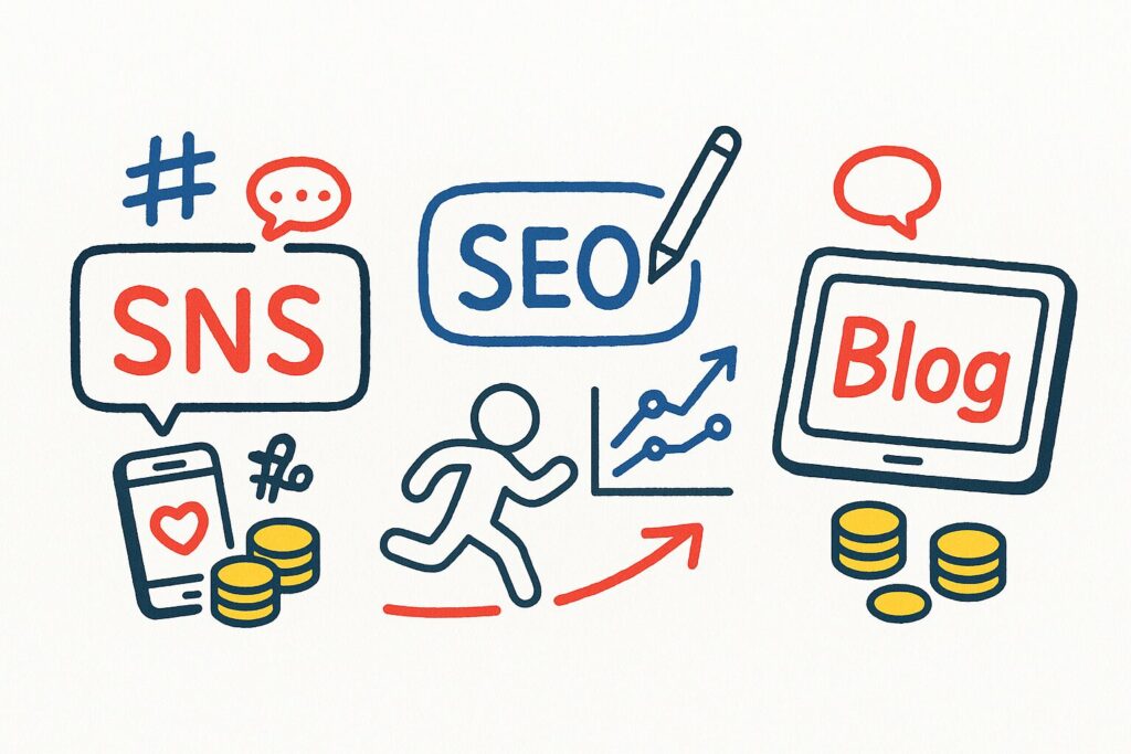 SNS運用ならペルソナ設計・投稿型の雛形・簡易分析、SEOなら検索意図・見出し構造・内部リンクの基本を、教材を絞って一気に吸収します。