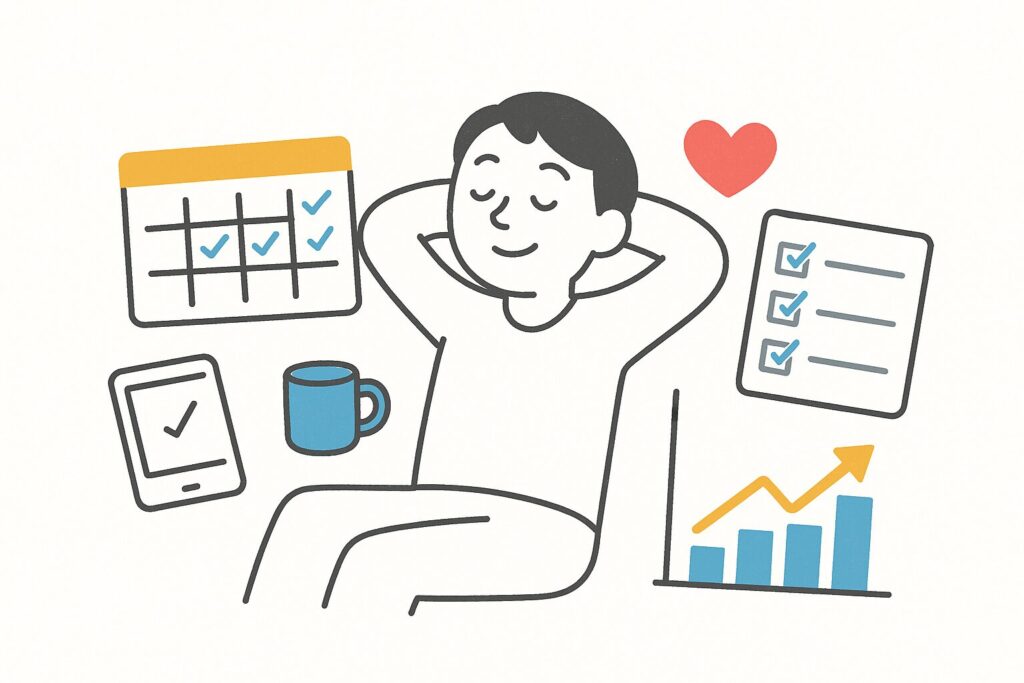 • 週1で“自己レビュータイム”を10分設定(感情と数字をセットで振り返る)