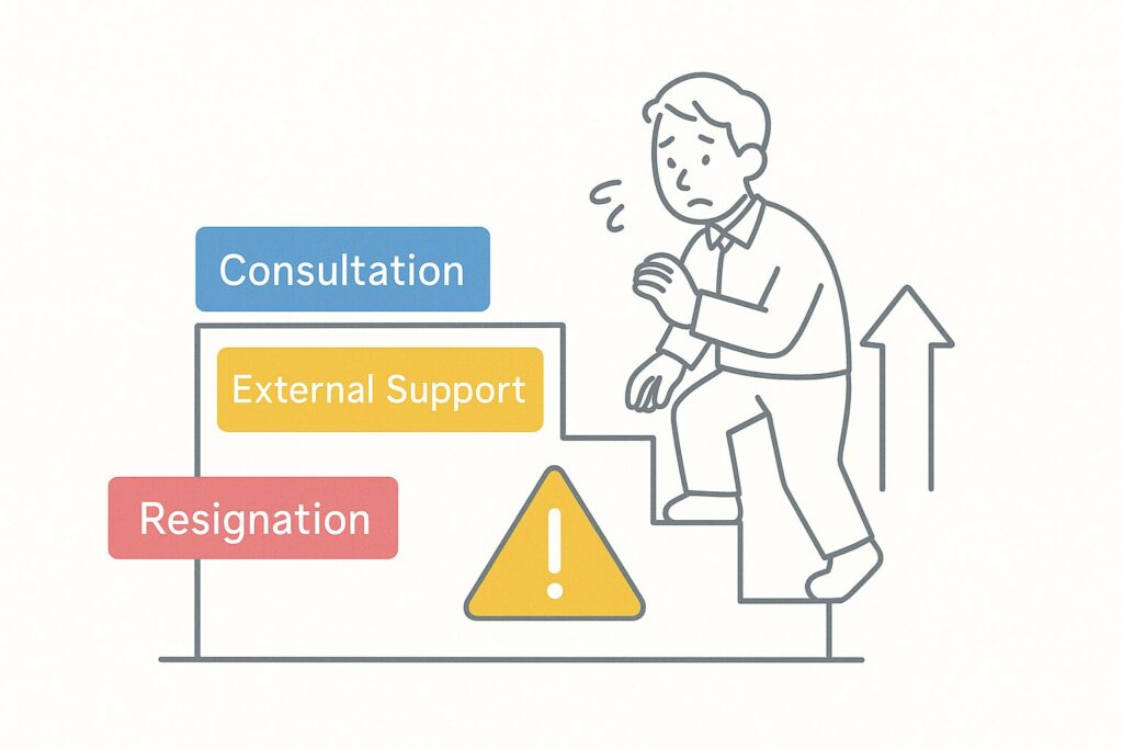 - 限界の線引き:証跡化/相談フロー/最終手段としての退職代行まで