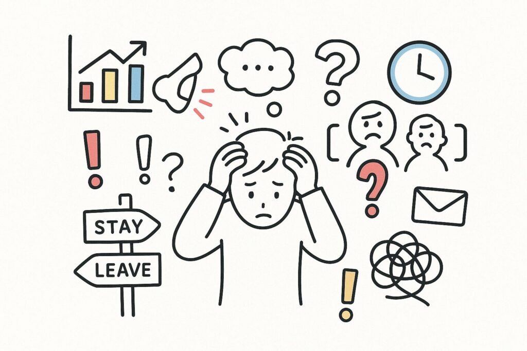 結論:その感情は正常です。いま必要なのは「衝動のまま退職」ではなく、①残る(役割/環境の微調整)②猶予(期限付きで整える)③辞める(安全に抜ける)の3択に分けて、実務の型で進めること。