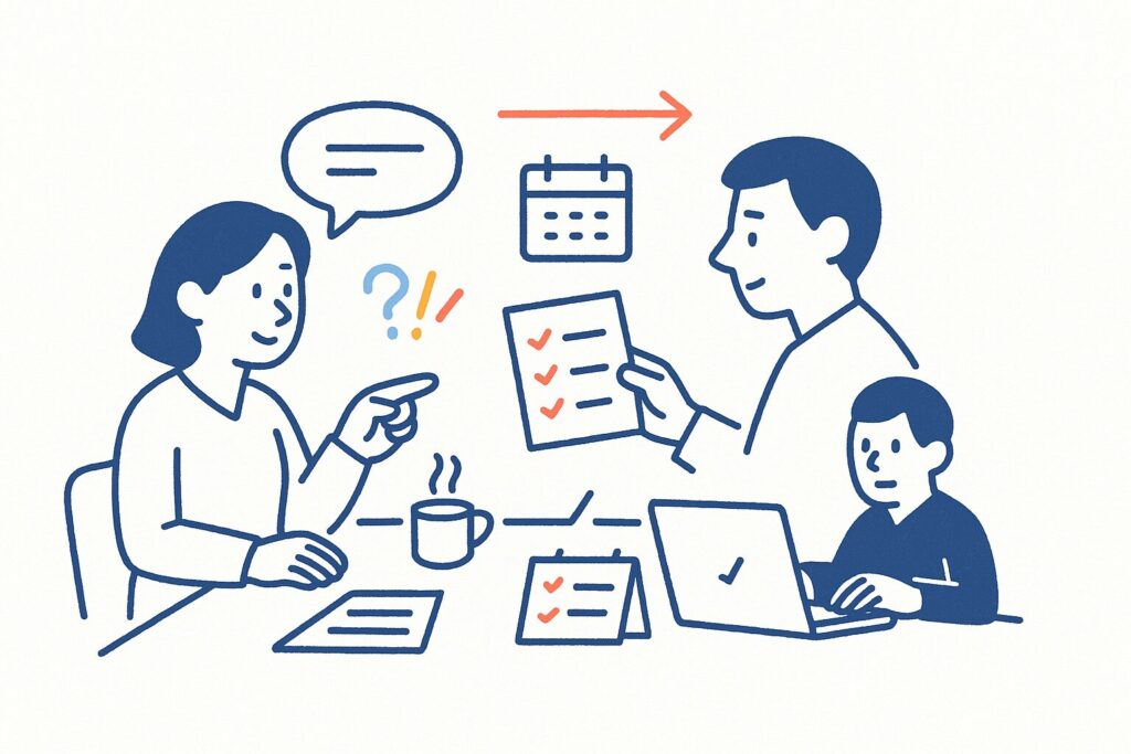 どのタイプでも共通して効くのは、期待値の再定義とレビュー観点の限定です。つまり、最初に「目指す到達点」「やらないこと」「合格ライン」を握ること。そして途中で「どこを見てほしいか」を明記してレビュー依頼をかけること。これだけで差し戻しの“入口”が狭まり、日々のうざさは目に見えて減ります。