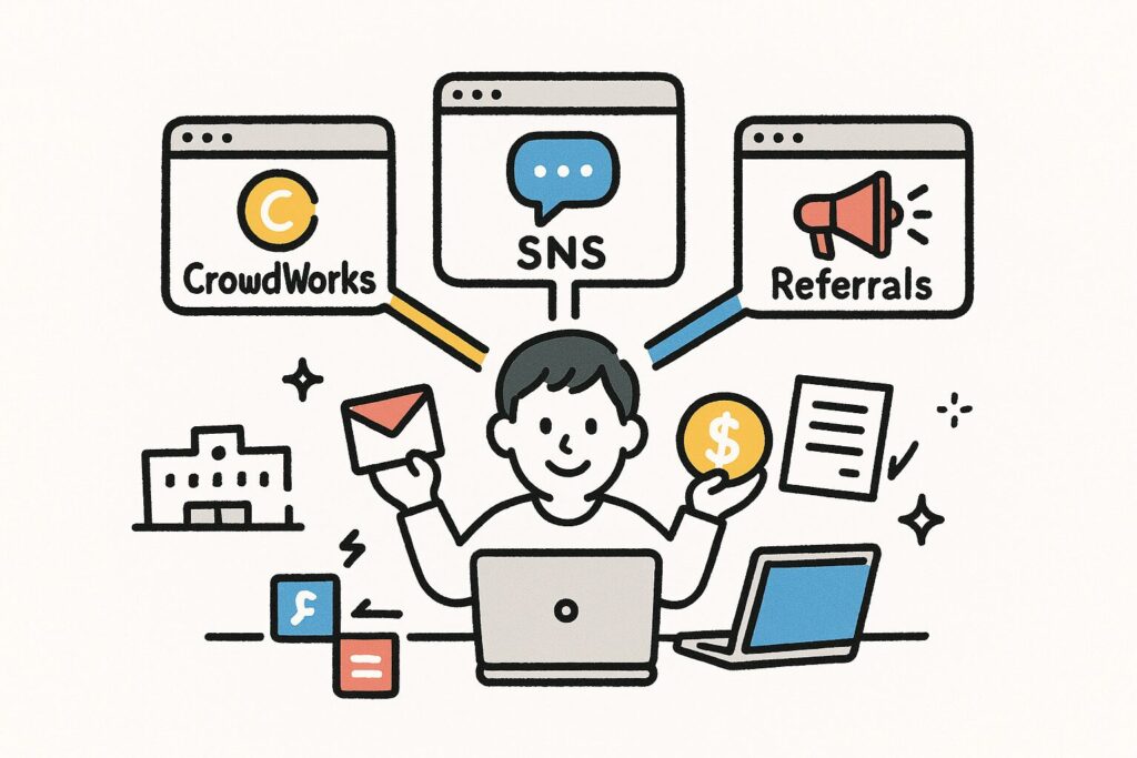 副業でキャリアアップを狙う場合、案件獲得チャネルを理解することが重要です。代表的なのは以下の4つです。