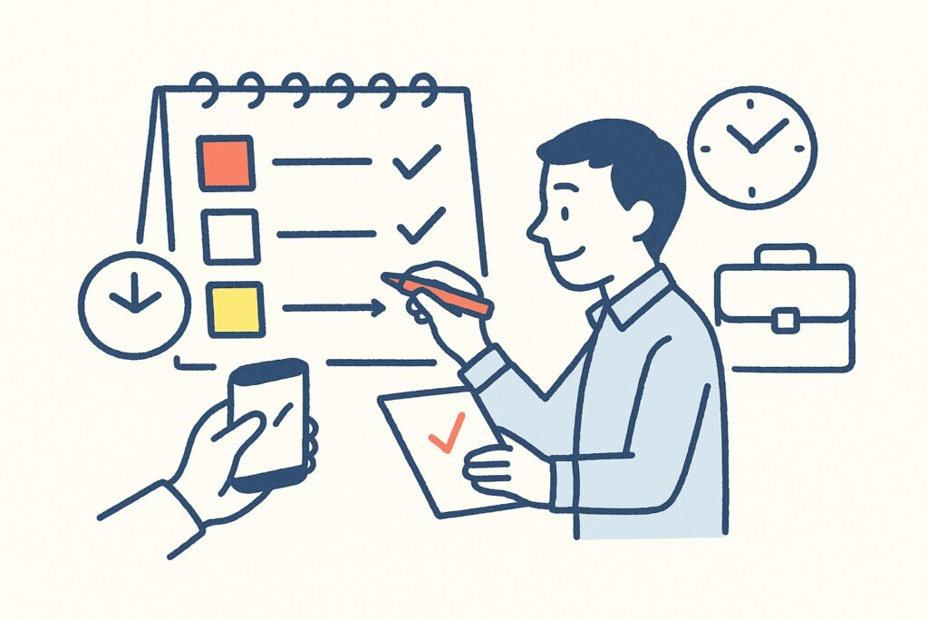 最終出社日は、有休消化の開始日と表裏一体です。現場の不安は「臨時対応」「属人作業」「対外連絡」。ここを先回りで処理します。対外メールの署名変更と不在設定、グループ宛の通知、保管庫の整頓、顧客・協力会社への個別連絡までを短文化し、チェックリストで受け渡すのが効きます。