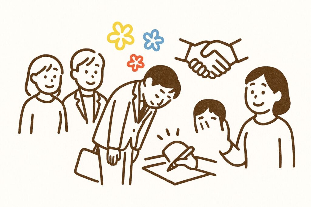 円満とは「全員が満足する」ことではなく、関係を壊さずに終えることです。技術的には「決定事項の維持」「引継ぎの誠実さ」「感謝の可視化」の三本柱。ここでは、最後の一押しとして効く言葉と仕草、そして将来の紹介依頼やレファレンスを見据えた出口設計をまとめます。